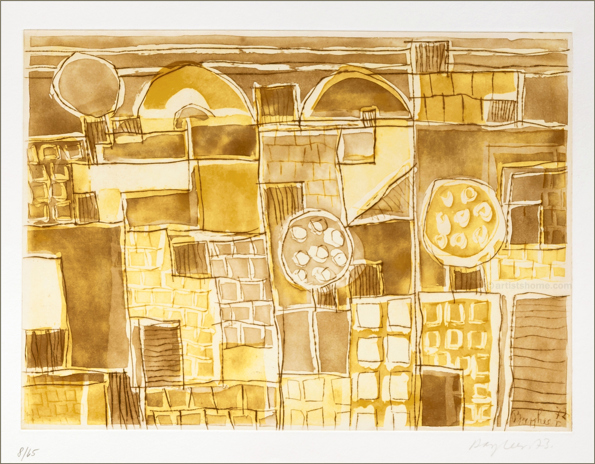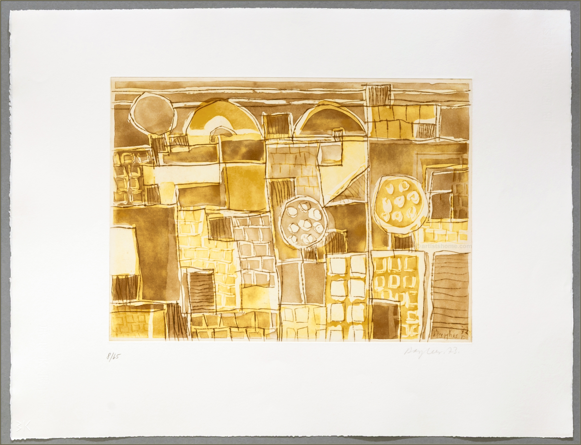 Details:"Forio" - 1972 After World War II, the small town of Forio on the Italian island of Ischia became Eduard Bargheer's adopted home, and after his return to Hamburg, his summer residence. Both places were welcome motifs for Bargheer to capture in his paintings. A gifted engraver, he succeeded in giving his aquatint prints the glazing effect of watercolors, making them appear as if they were unique pieces. Offered here is one of 65 numbered copies on BFK Rives wove paper.